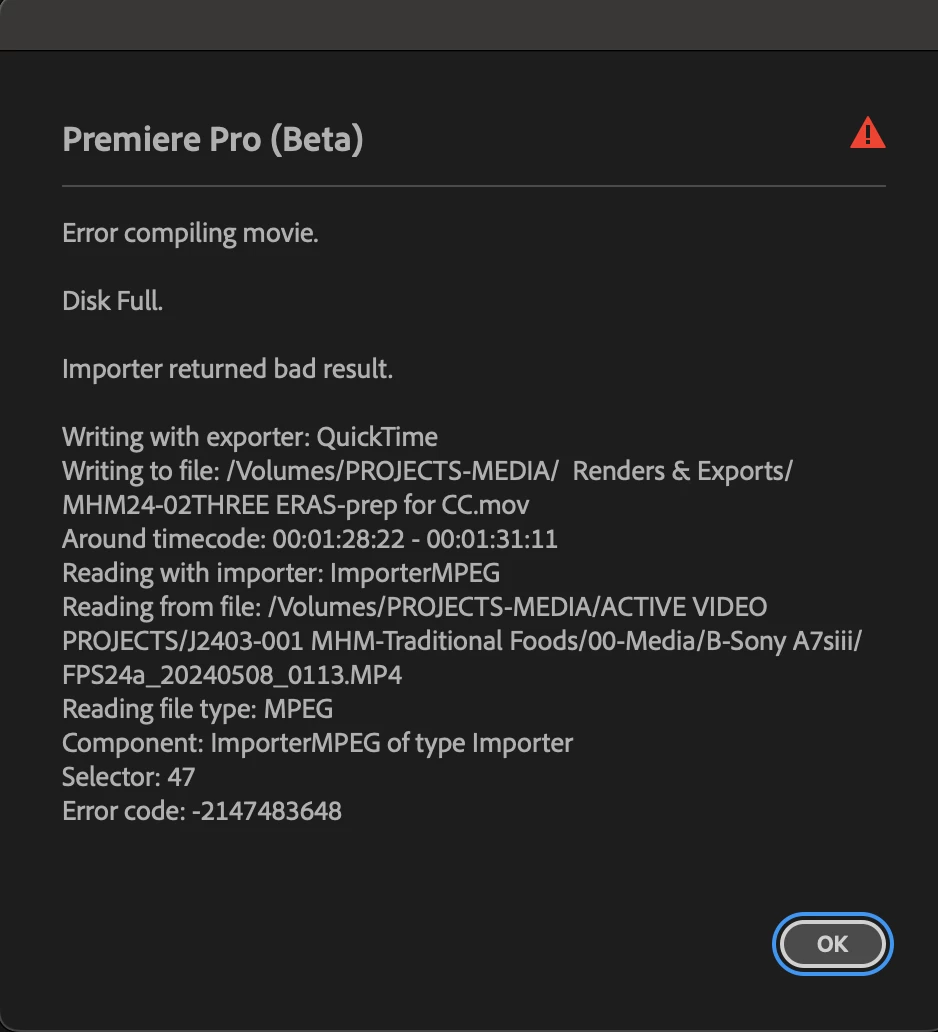 That said, we just had two more crashes - the second trigged by a Quicktime export rather than H264.