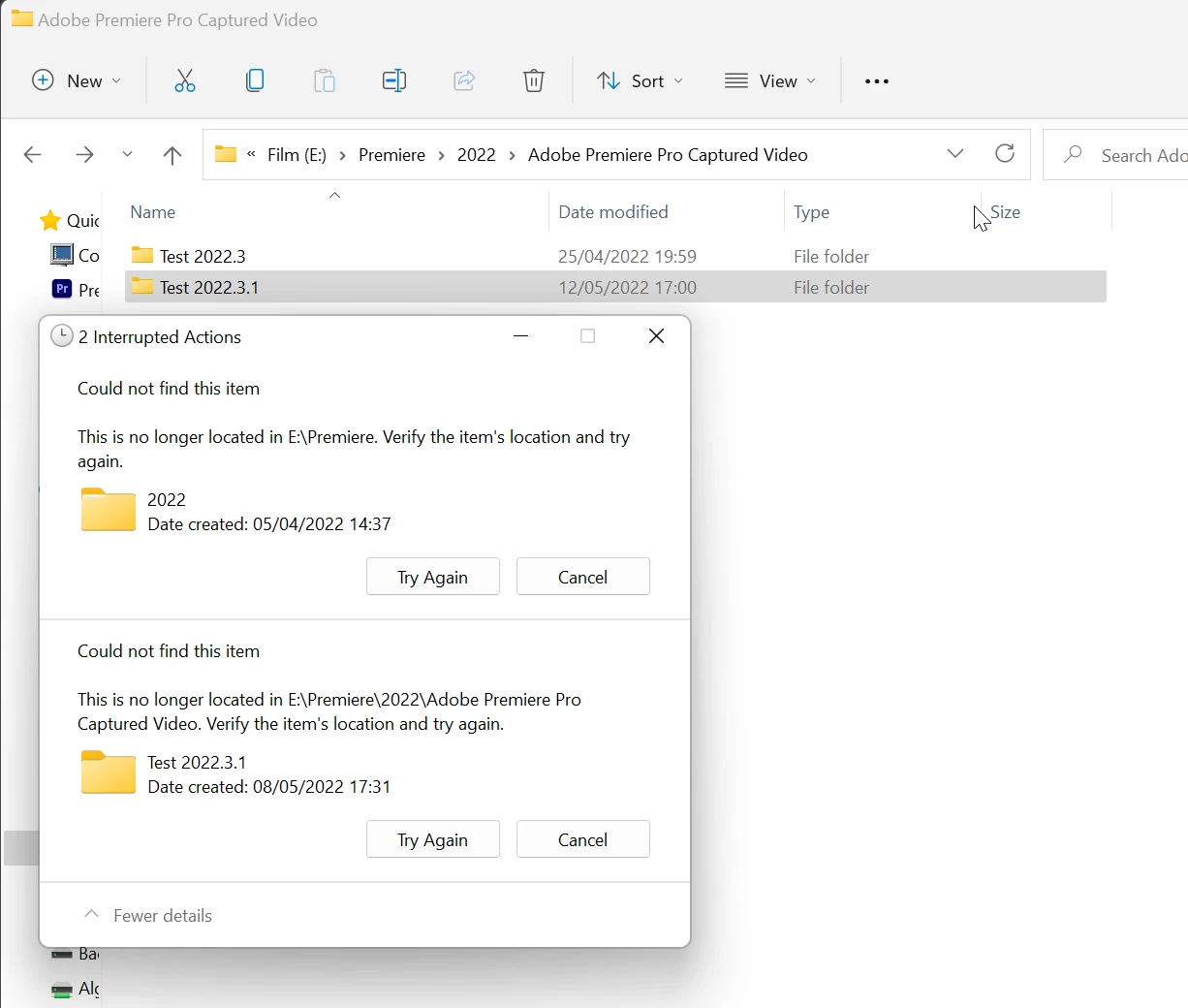 Premiere is leaving behind folders that cannot be deleted from the harddrive.