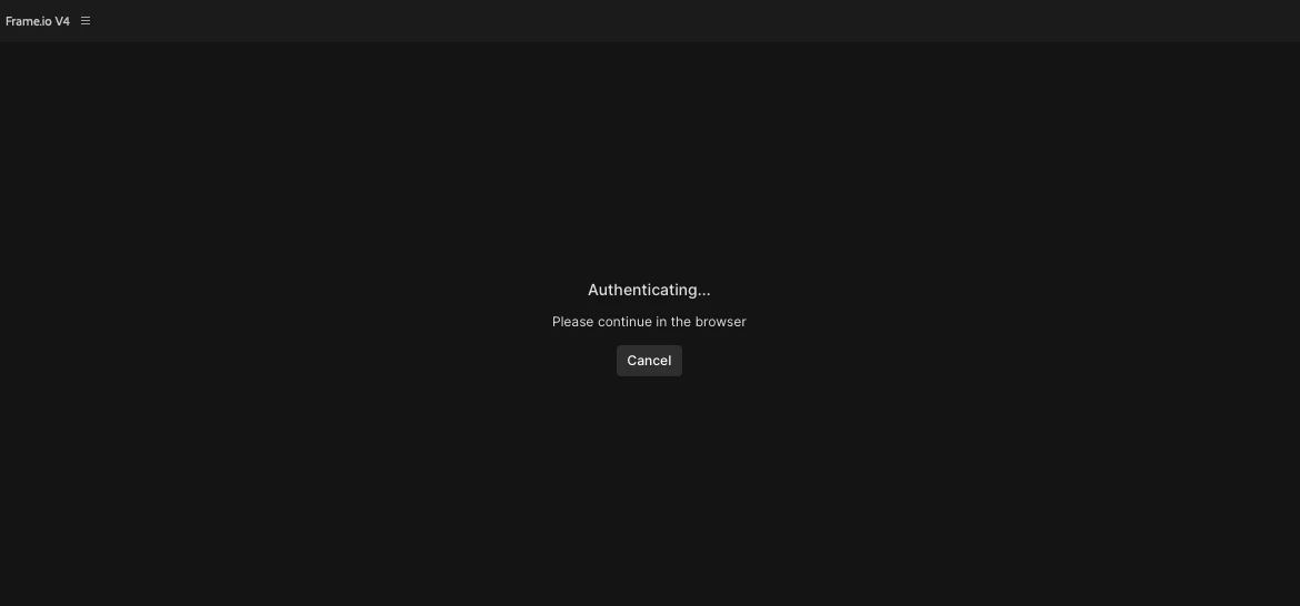 Frame.io v4 stuck on "Authenticating... Please Continue in the browser" window, and browser never opens.