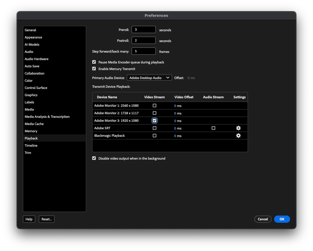 This has been a bug for a while now. If you have 3 computer monitors connected to a mac and want to use say the 3rd monitor as full screen playback, if you immediately go to settings - playback and set the 3rd monitor as the video stream nothing displays. You have to slightly constrict the UI on the top right of the source record/property panel and THEN it will display full screen on the right monitor.