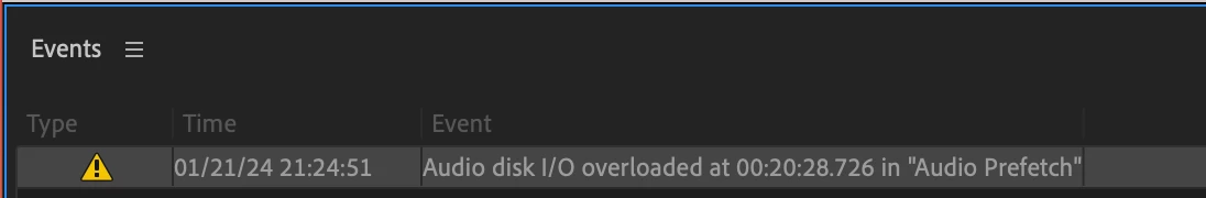 I've used the new Pr Beta 23.1 build 33 on the latest project I have and I am getting Audio disk I/O overloaded at <timestamp> in "Audio Prefetch" warnings a lot (maybe 10 times or so).