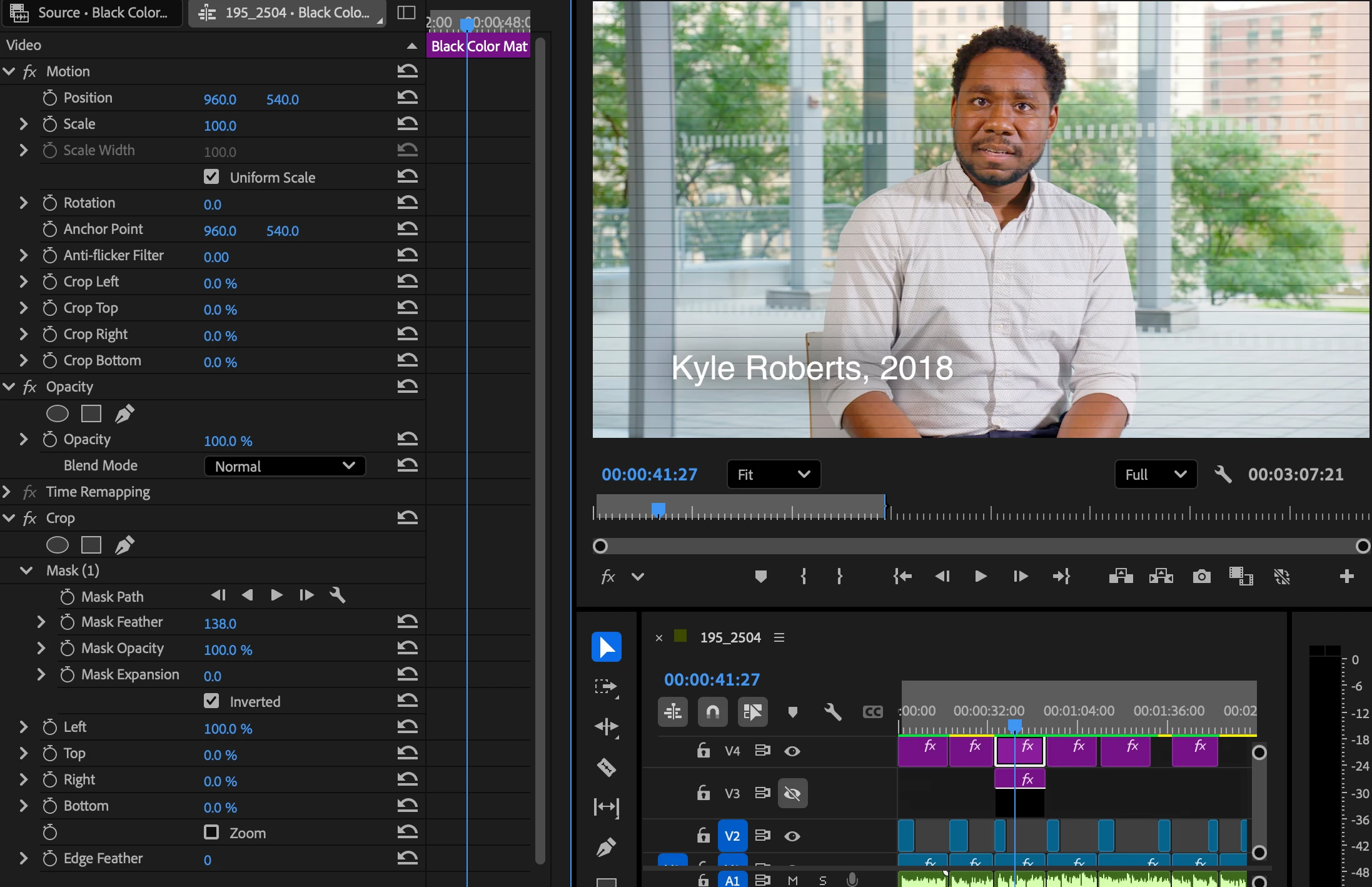 –One is using a mask on the opacity of the Black Color Matt (and only effects the masked area)