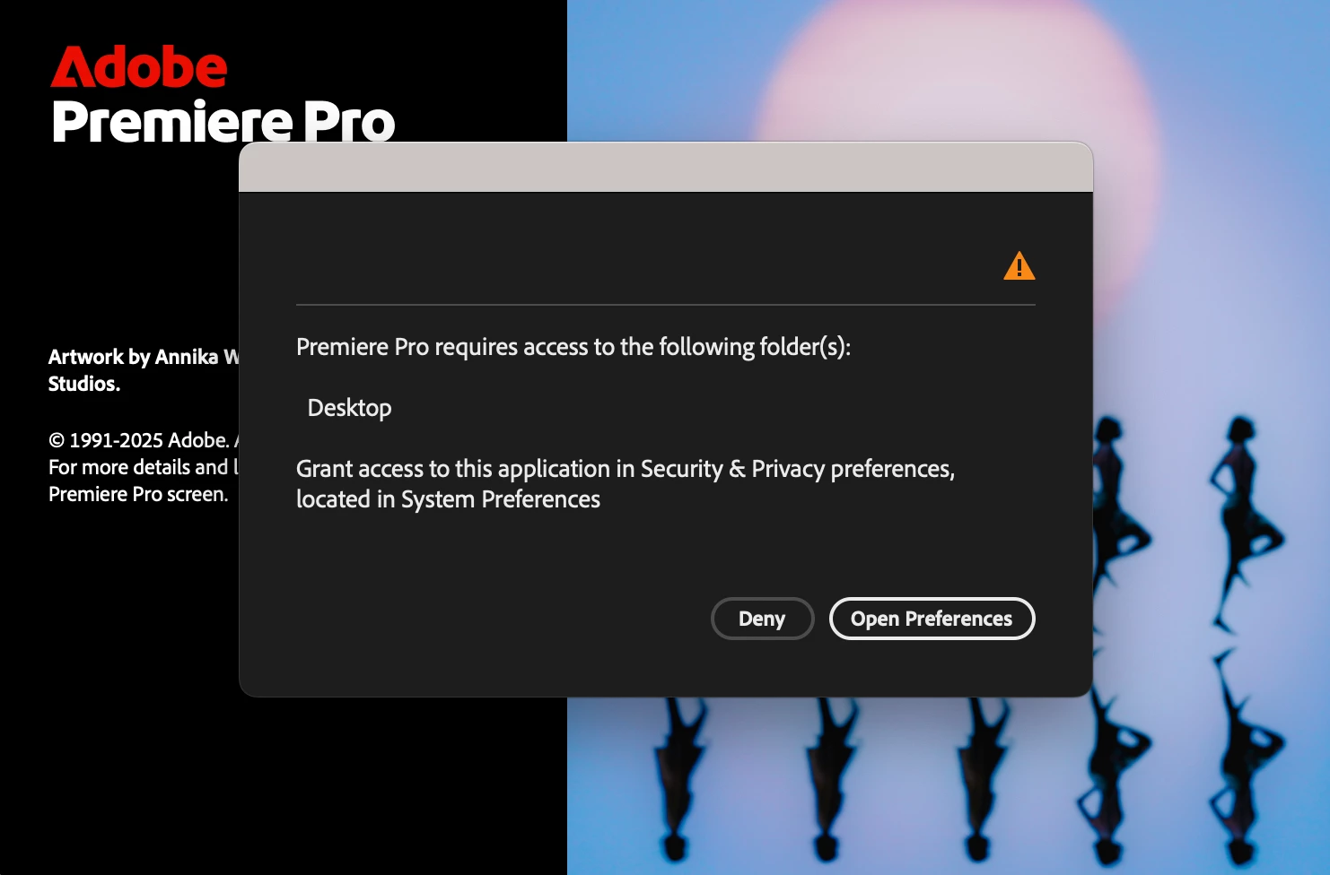 locked out: "Premiere Pro requires access to the following folder(s): Desktop"