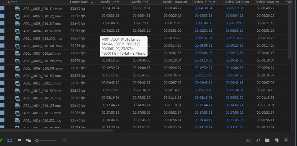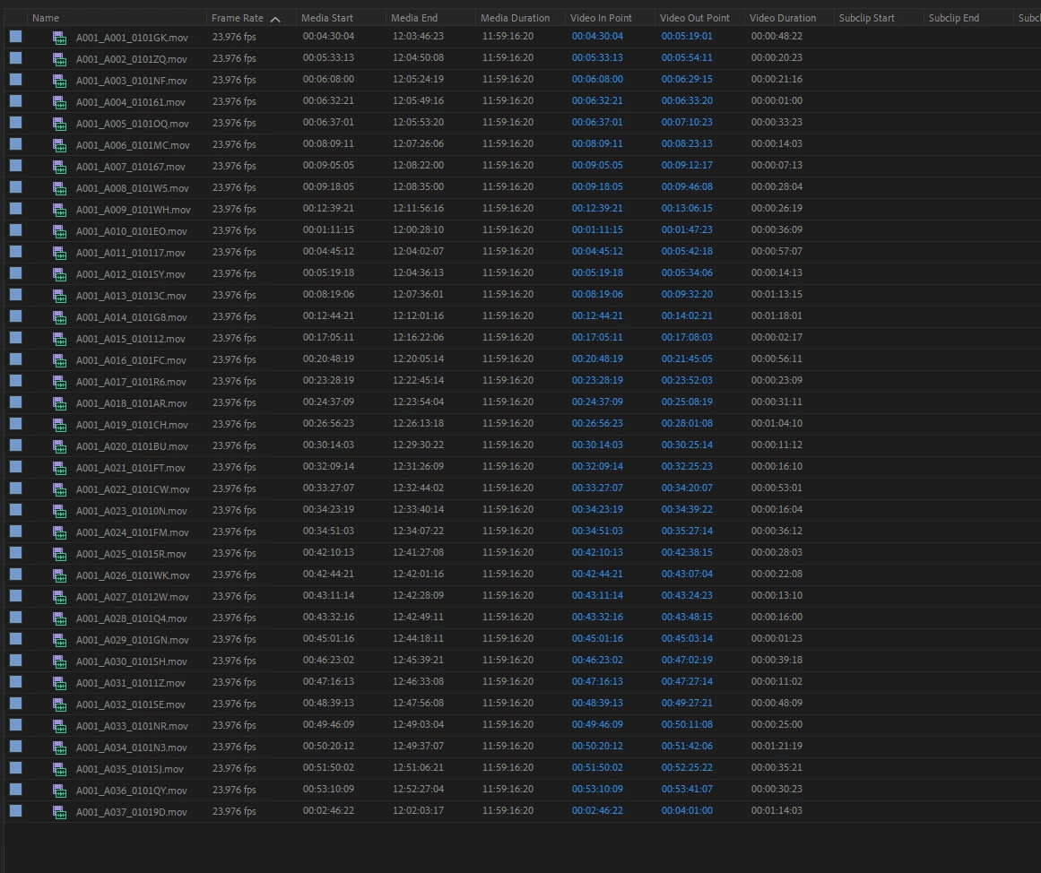 note media start / media end and duration - same clips.