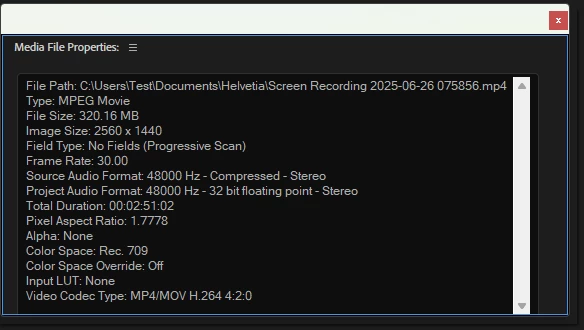 I have a project that only has one 2560x1440 clip that gets interpreted incorrectly in this Beta release, but correctly in the current release (26.0.2 (Build 2)). Here are the clip properties:
