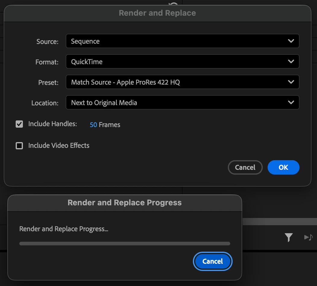 Result: Render and Replace Progess-Box pop up no render progress at all