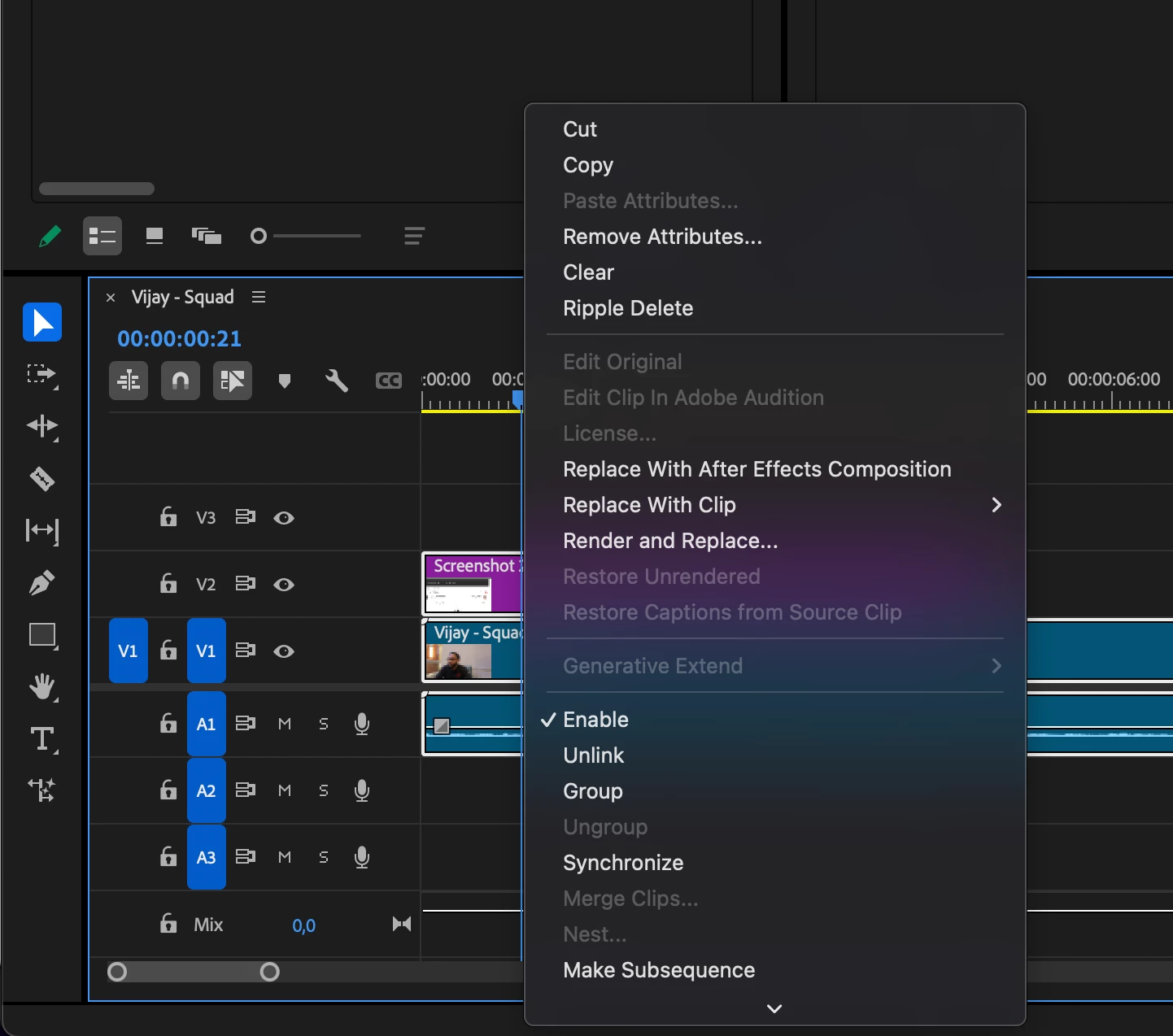 "Nest" Option Grayed Out in the current build of premiere beta