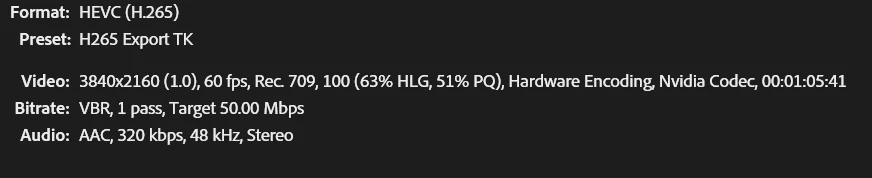 The exported Clip is a basic 1 min clip, Metadata Burnin effect, and BCC Magic Sharp applied.