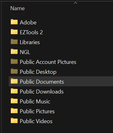 If you go into public documents you will continue to find a matching directory structure with these directories
