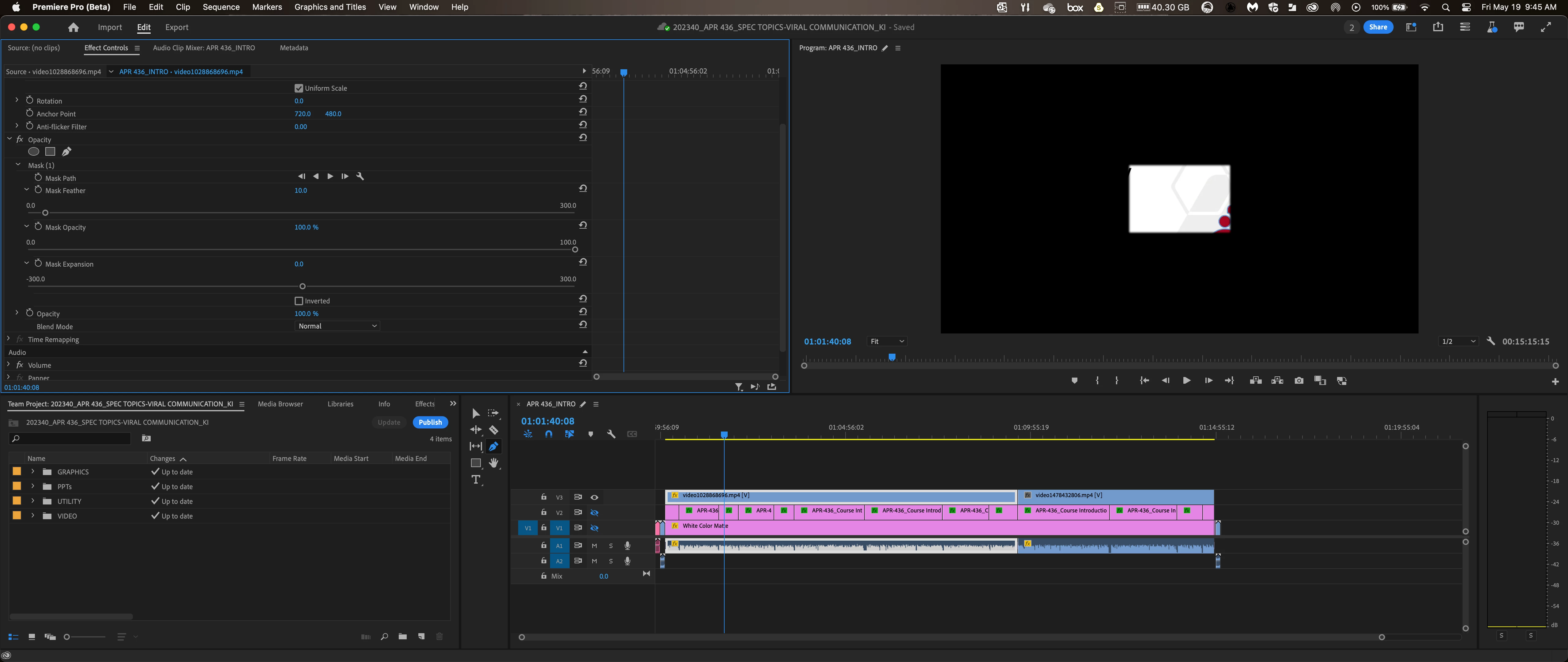 Created a garbage matte with an opacity mask, the outline controls to move the mask are not visible. I can change parameters in Effect Control pallette, but cannot move the position of the mask. Please see attached screen shot.