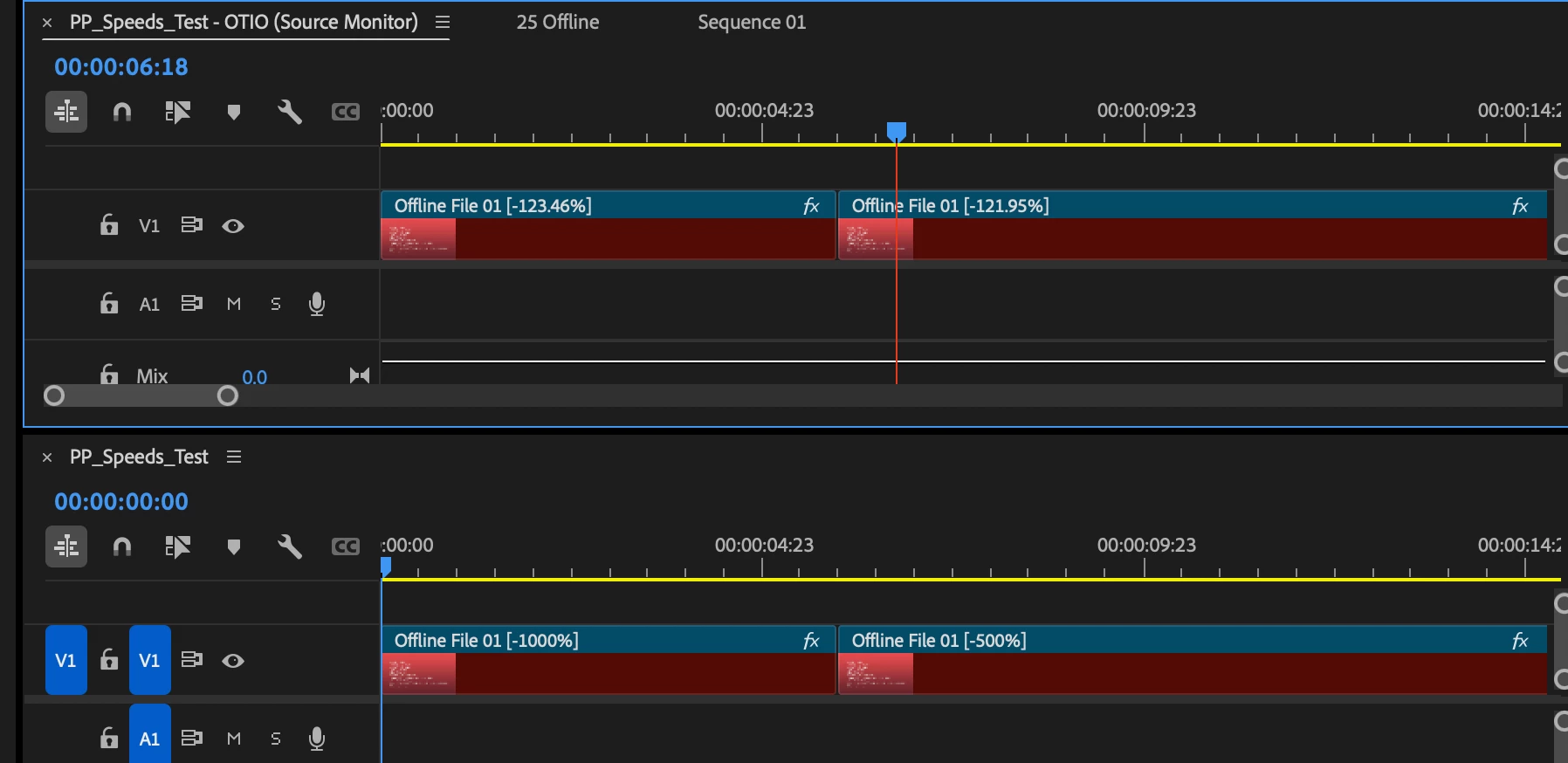 The speeds are (nearly) correct when the PP .otio export is converted to EDL with otiotool.