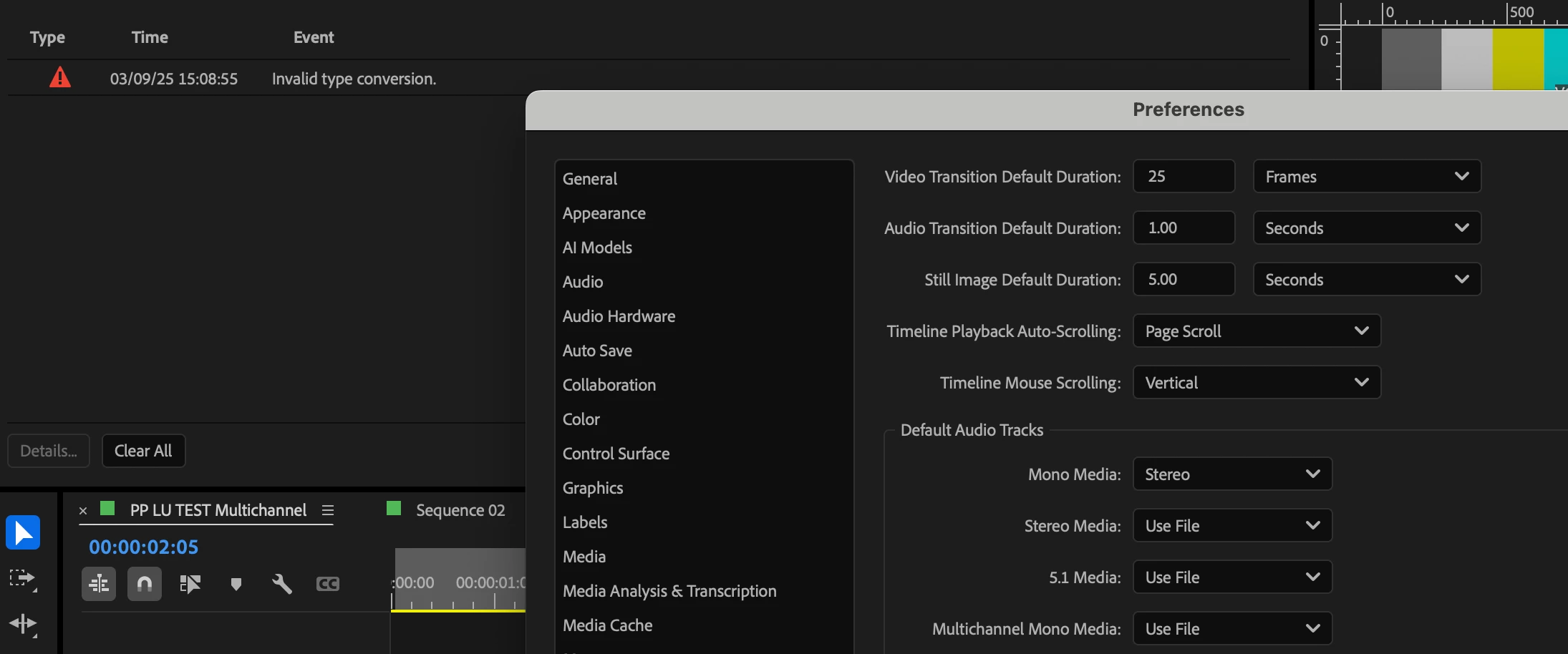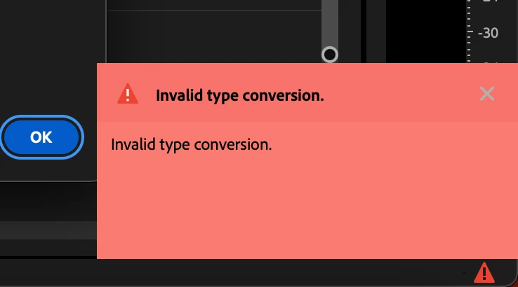 ****Fixed (Build 16) I'm getting the "Invalid Type Conversion" error message that has become endemic with 25.3 (Builds 13, 14, 15) Can't save preferences-at all. Can't even just go to preferences>General>do nothing then hit OK and nothing happens. Have to hit cancel every time. I've done the necessary trouble shooting. I'm no rookie at this. Trashed preferences. Cache, Temp disable 3rd party, full acceces to disks for PP, Checked disk permissions. I've also deleted profile, and rerinstalled aftert deleting profile. . Seeing multiple reports of not being able to save preferences so calling it a bug. Also, there are many reports of different manifestations of the "Invalid Type Conversion" error message with different circumstances.