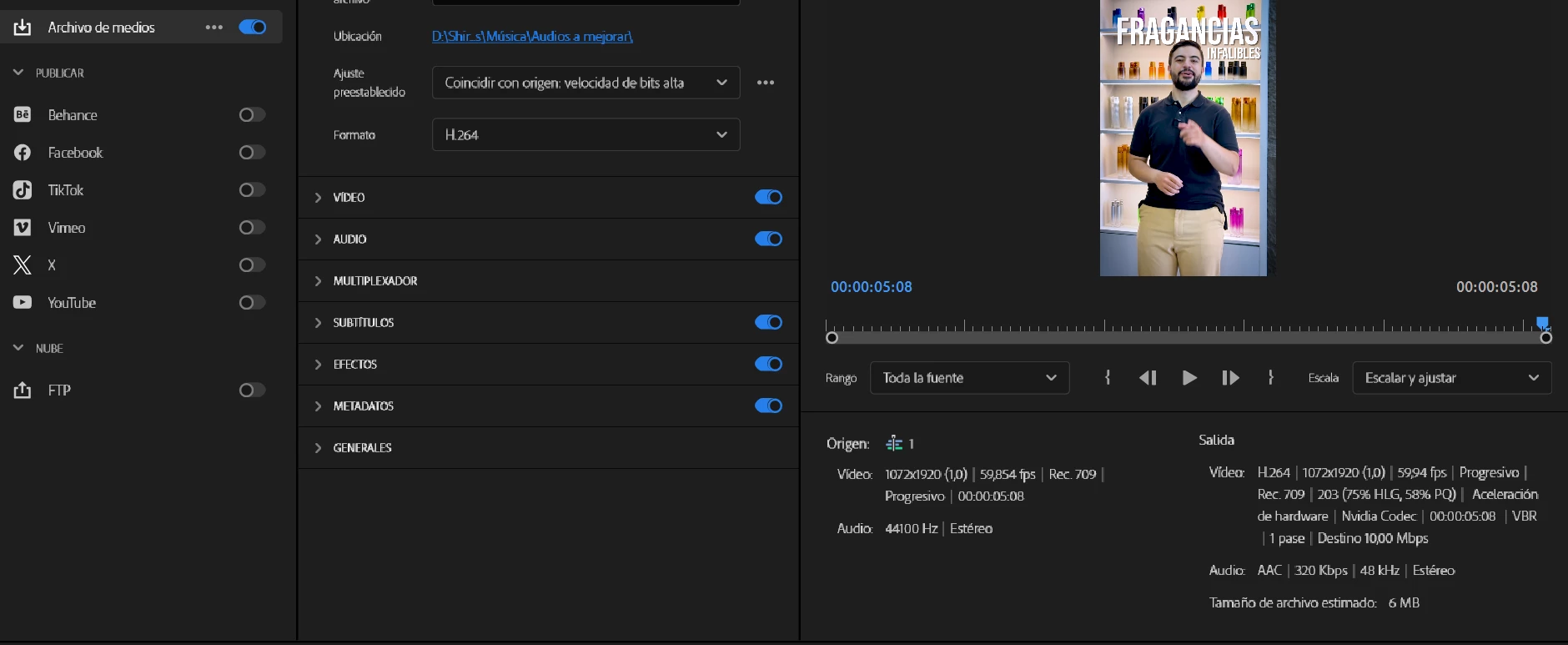 Me sucede que en varios proyectos ya, a la hora de exportar, las opciones se ven de muy mala calida y borrosas