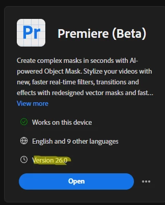 I’m using Windows, and each time I try to open Premiere Beta 26.10, the loading screen appears for about five seconds before the application closes automatically. There’s no error message — it just shuts down unexpectedly.