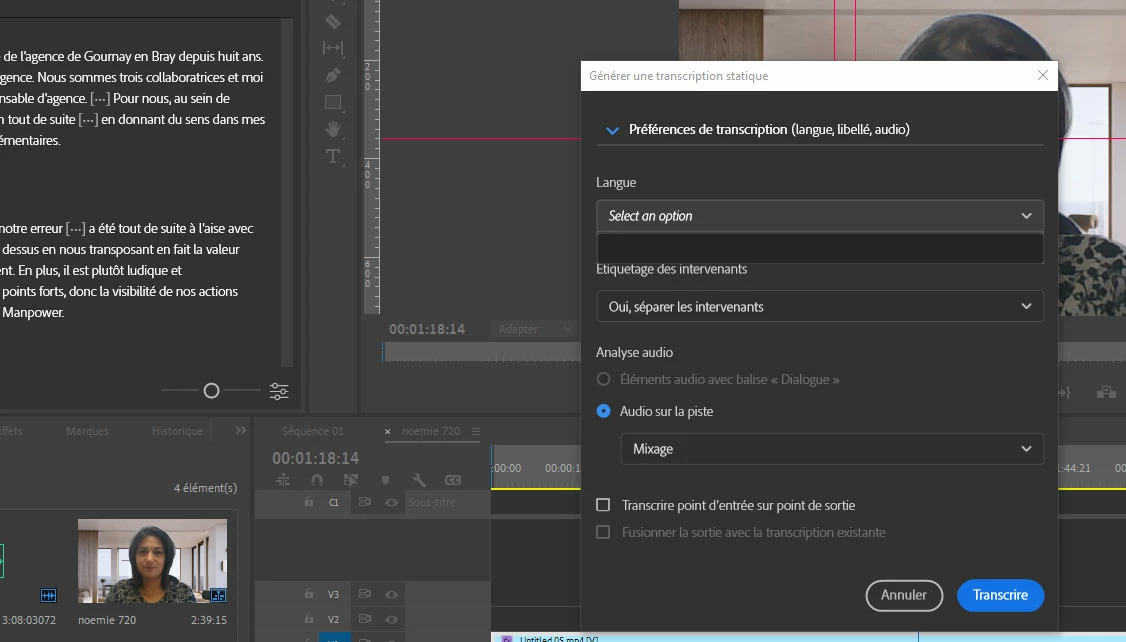 Première pro Beta 24.1.0 - No language offered in the transcriptions.