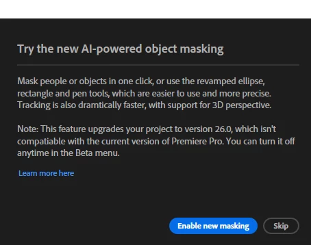 I have been trying to open Premiere Pro Beta 25.6 to try the new masking feature but I can't get it to open. It shows the splash screen and then closes.