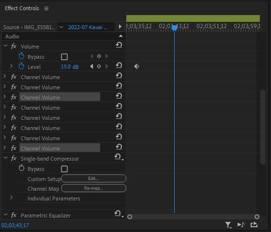 Also, something that is very weird is each audio clip has eight Channel Volume Fx. I try to click on them and delete them but they do not disappear. Why does each audio clip have so many???