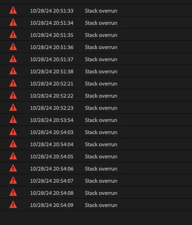 Since few version ago I've been getting stack overrun errors in Premiere Pro beta. It seems to happen especially when doing something in the Lumetri panel. Premiere seems to work ok, but those errors popup all the time.