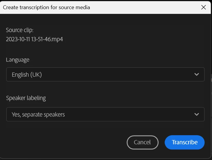 Essentially Text Based Editing Workspace only transcribes videos with 1 audio track. So i have to edit the clip and reencode it with only one layer of audio