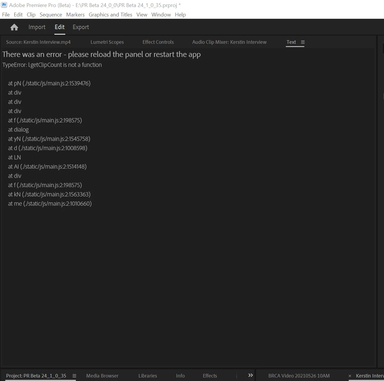 Transcribe Source Reload Text Panel Error 24.1.0.35