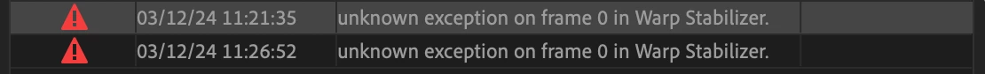 Warp Stabilizer error: unknown exception