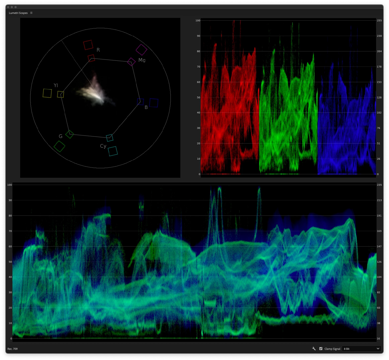 Difference is visible on the scopes as well as the monitor