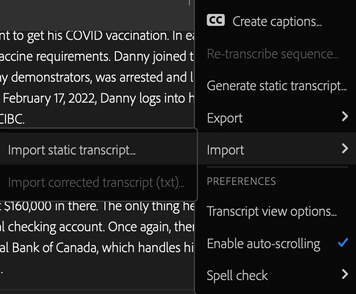 Sometimes this feature works but right now, it won't let me select "import corrected transcript .txt"