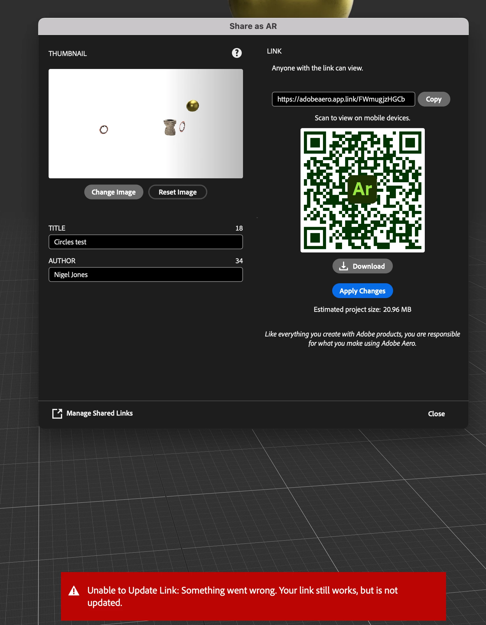 Tried yesterday and again today to 'Apply Changes' to a project in Aero with no success, getting the red error bar at the bottom of screen. Really hope this doesn't take as long as the problem I had with Indesign's Publish Online which took about 10 weeks to resolve and many, many hours of reporting? (project is only 20mb).