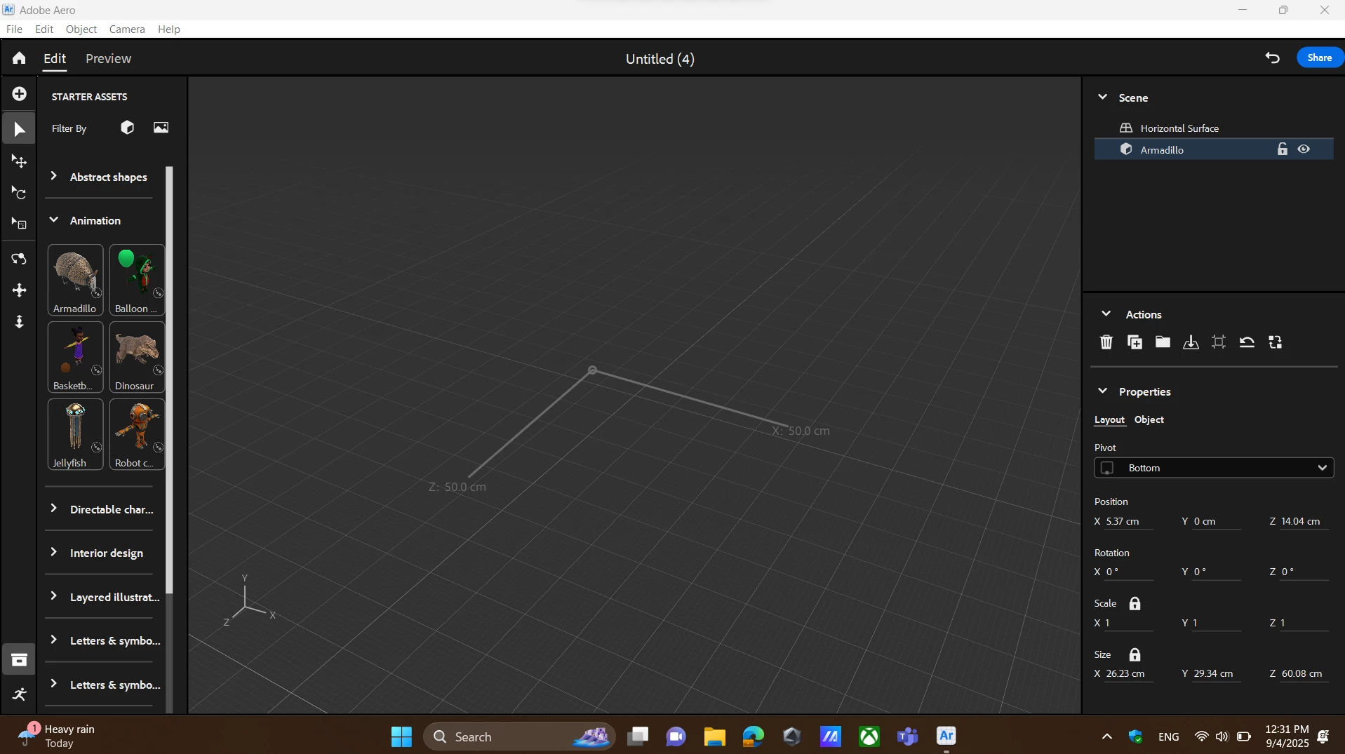 I'm currently using Adobe Aero Beta (Desktop) and I'm having an issue where imported assets (including built-in assets) do not show up in the scene.