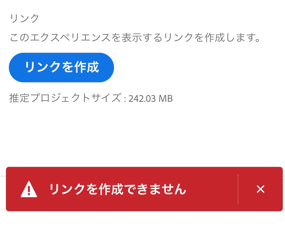 227MB project fails to generate link. iPhone 13 Pro, iPad Pro. Same result. Any suggestions?