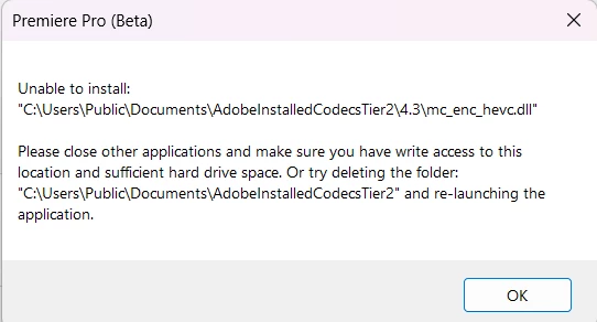 hevc encoder not installing. adobeinstalledcodecstier2