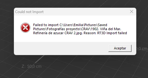 Hi! estoy teniendo problemas con el programa Adobe Aero con la importación de imagenes. Me marca los siguientes errores: