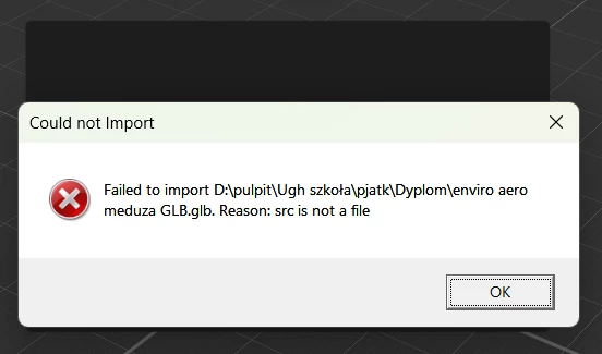 Hello, it's my 1st time using aero. I'm trying to import some blender models in the .glb format but this error pops up. I read that .glb is the format u want for 3d, but something has to be wrong. My friend is opening this file on his pc no problem. Has anyone encountered this issue before?
