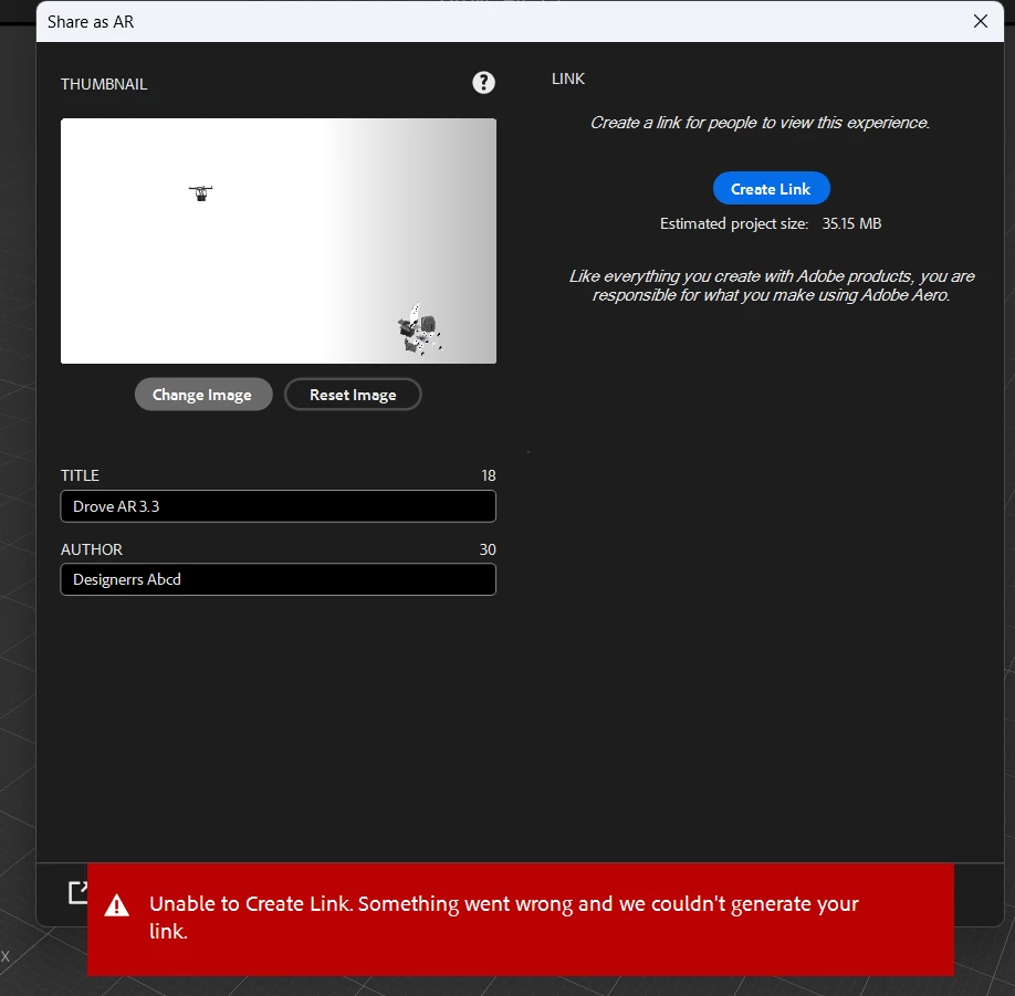 Unable to create a link on Adobe Aero