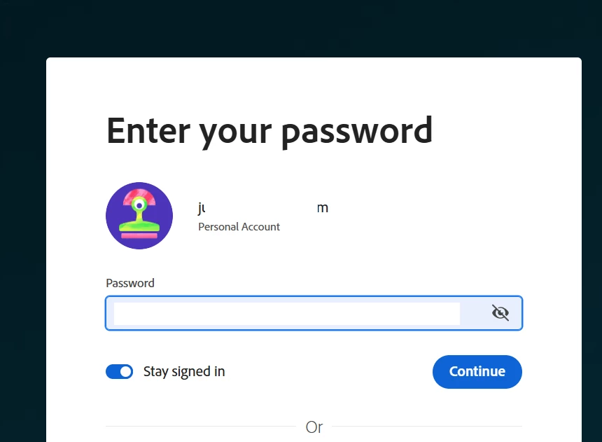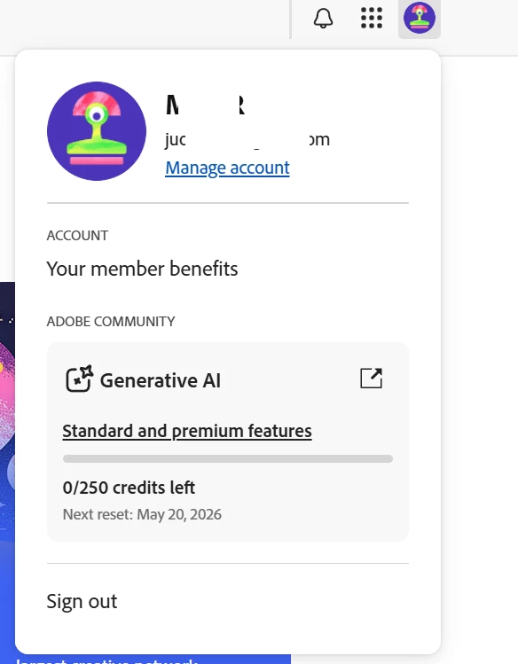 Account name is very similar to my partner’s account. She has a creative cloud plan with 4k generative credits. That is amazing. But that - green thing - that’s not my account. What is this? OMG what is that?