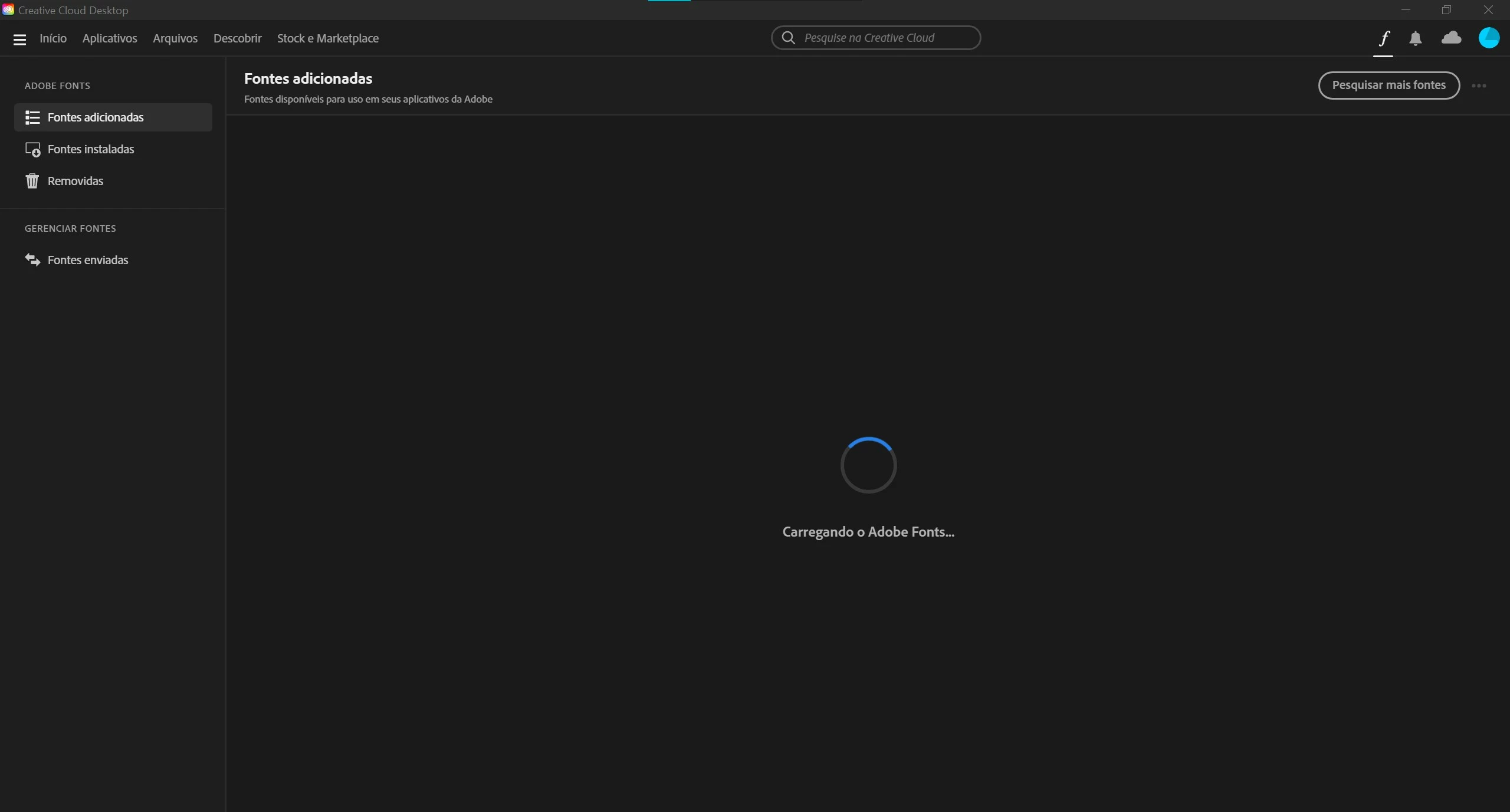 Abro o CC e depois os aplicativos Adobe que utilizo e as fontes não identificadas. No CC fica carregando eternamente as fontes e nada acontece. Vide imagens abaixo:
