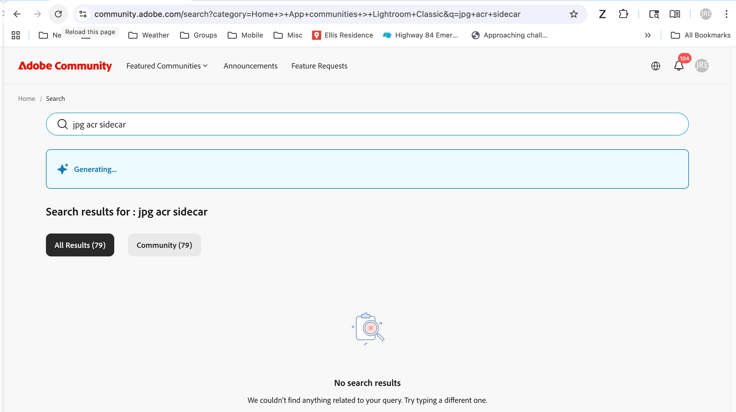 For at least the last few days, the forum search hasn’t been displaying result posts in these forums: Lightroom Classic, Camera Raw, Lightroom Ecosystem. It does display results in some other forums I’ve tested: Photoshop Ecosystem, Acrobat, Adobe Premiere.