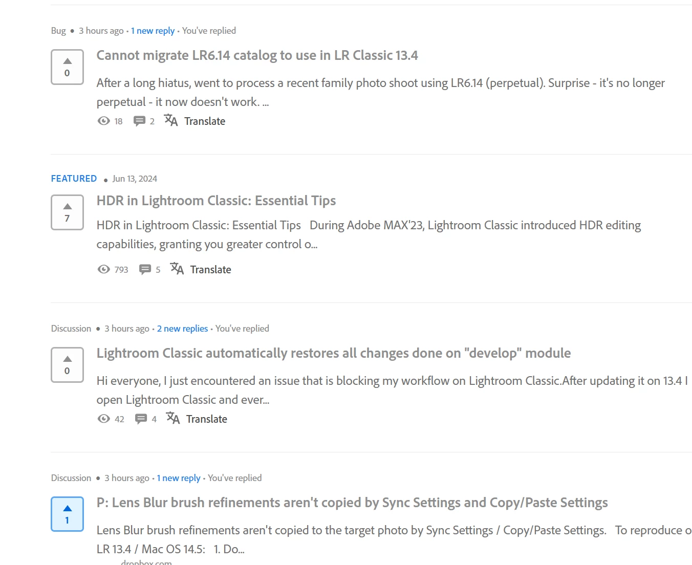 And I do see that per the community page (in my case LrC) I should see some: