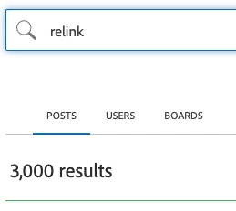 ... 3000 search hits, none of which are made by the user in question (in this example, me). (I can assure you that I have not made 3000 posts that include the word "relink").