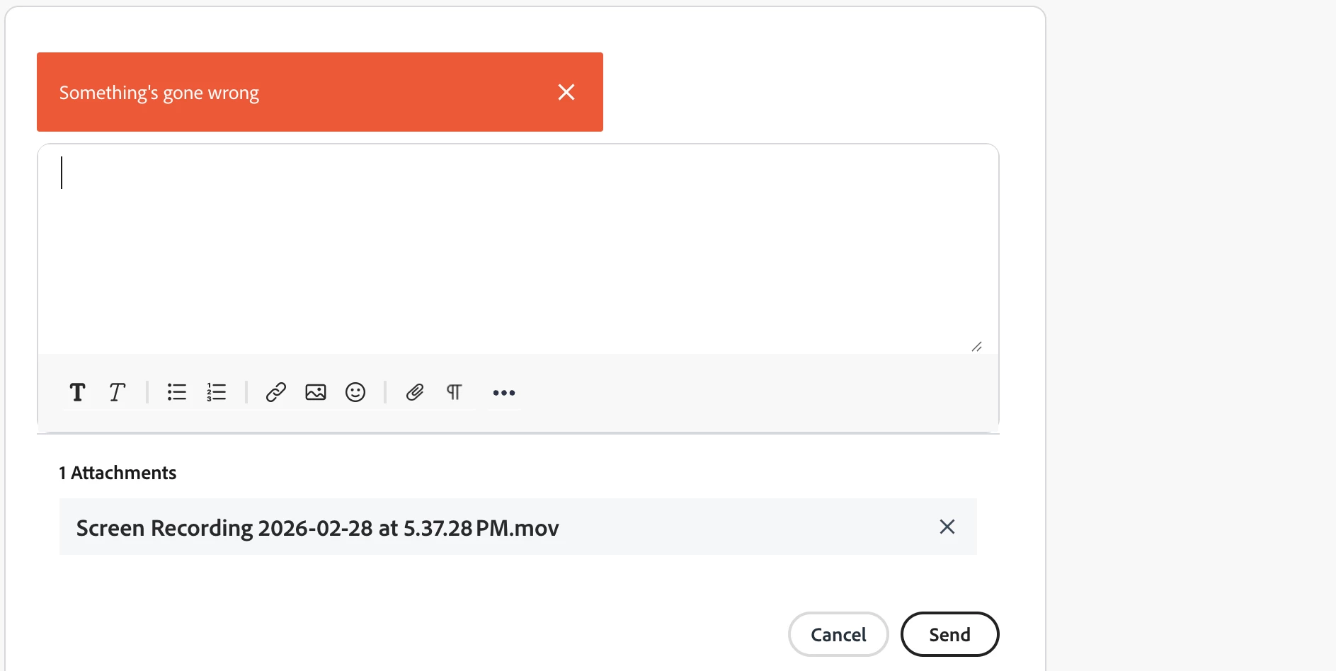 "Something's gone wrong" deletes 20 minutes of editing a reply