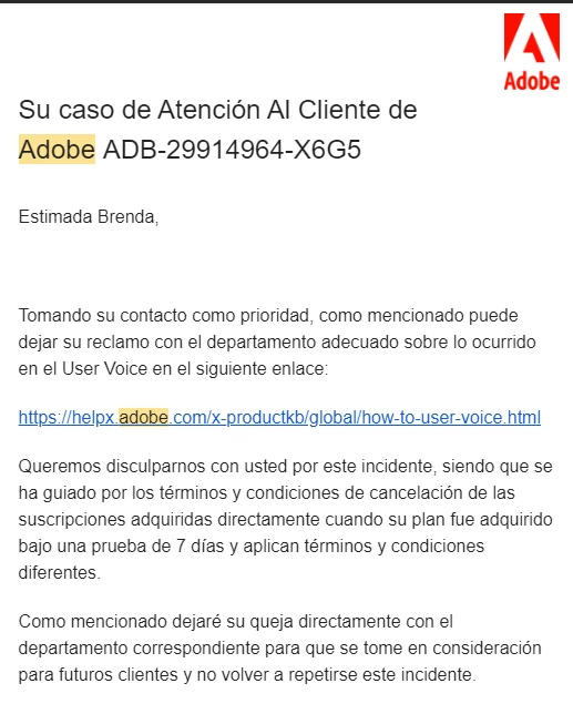 I am very upset because according to this link https://www.adobe.com/pe/legal/subscription-terms.html it says that if you cancel within 14 days a full refund will be made in your favor and IT HAS NOT BEEN SO. I have lost dozens of dollars because of this mistake. Please, I need the refund urgently. My Adobe Customer Care case ADB-29914964-X6G5.