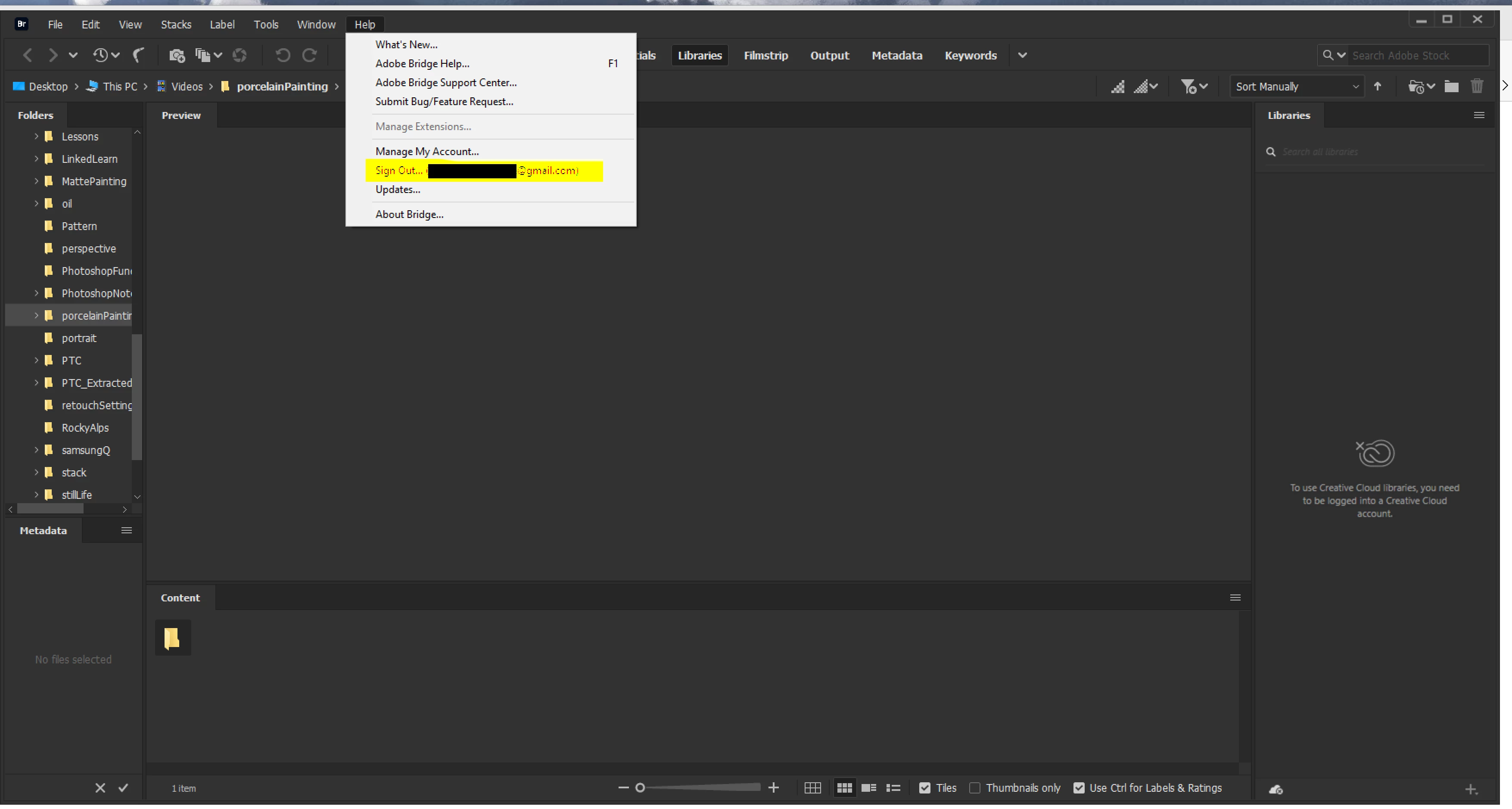 Bridge library pane does not know I am logged in