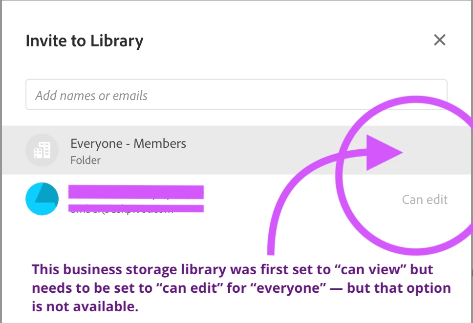 We have heard from users that setting the library in business storage permissions to "Can view and use" during creation and then individually inviting users as "editors" unlocks an additional layer of permissions, given how large organizations can be.