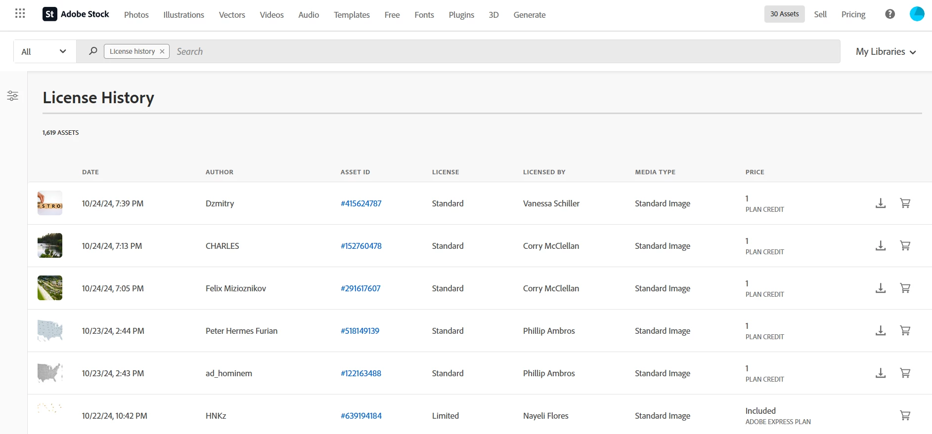 Export Function for Adobe Stock in License History