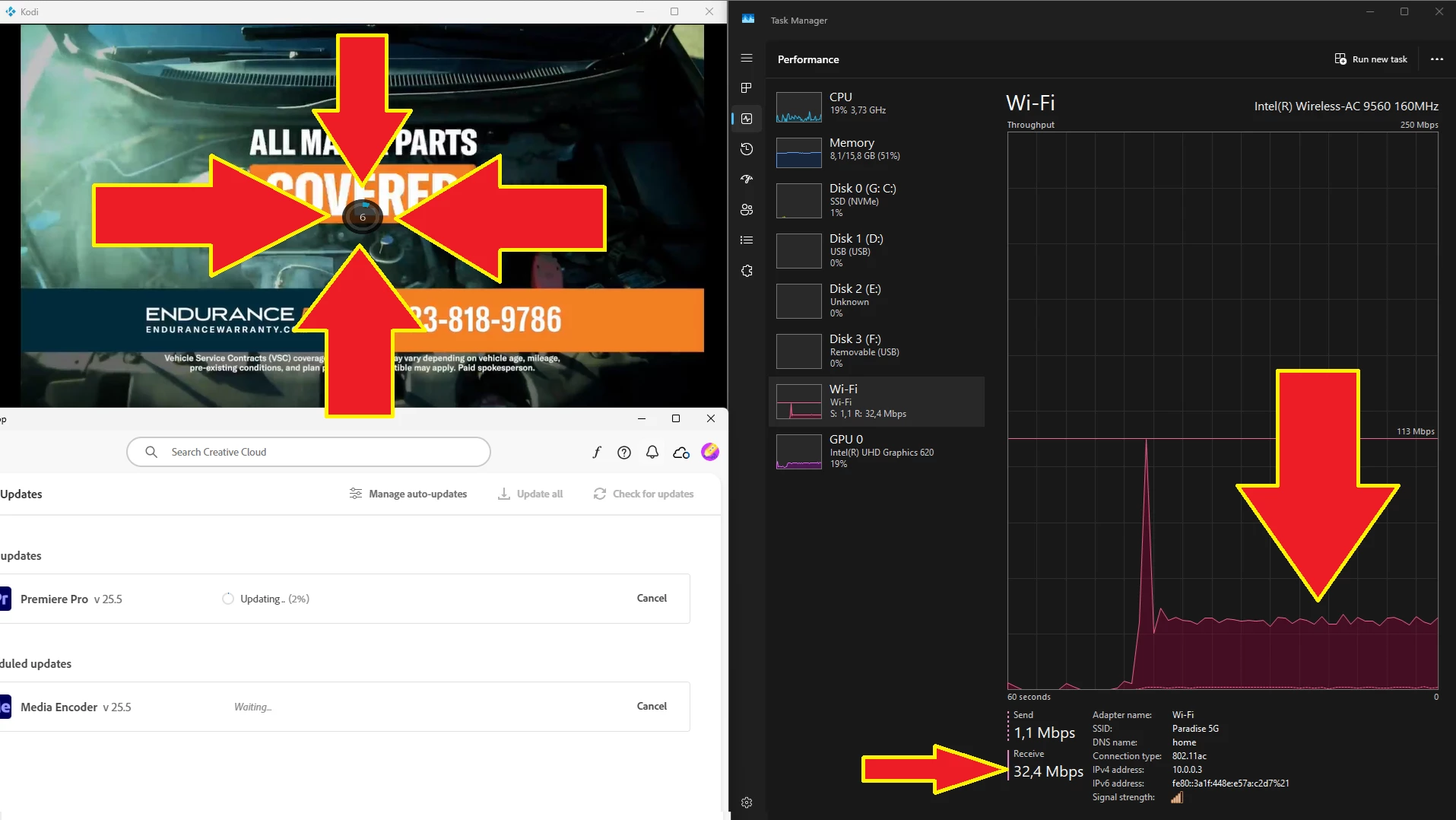 Looking at many comments on the Internet, updating software (e.g. Premiere Pro, Medie Encoder) consumes all available bandwidth. I have a 35Mb/s link and while updating, Adobe uses all the bandwidth and all other network activity grinds to a frustrating halt. My router cannot adjust the bandwidth. It does not support QOS, but even if it did, it does not make sense to penalise all network activity for something that could easily be implemented in the Creative Cloud app.