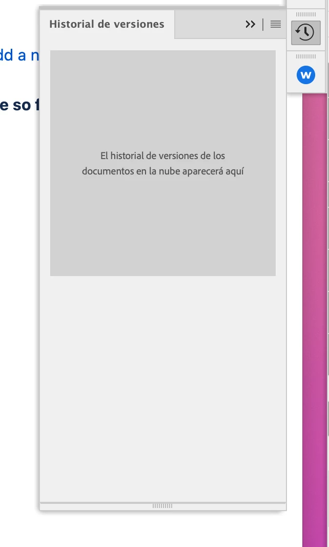 I cannot see any history for my synced documents to Adobe Assets, and I guess the feature only works with documents in the cloud, that I do not use. Aside from the problem of having two places to store documents to Adobe cloud, having different features for them is also problematic.