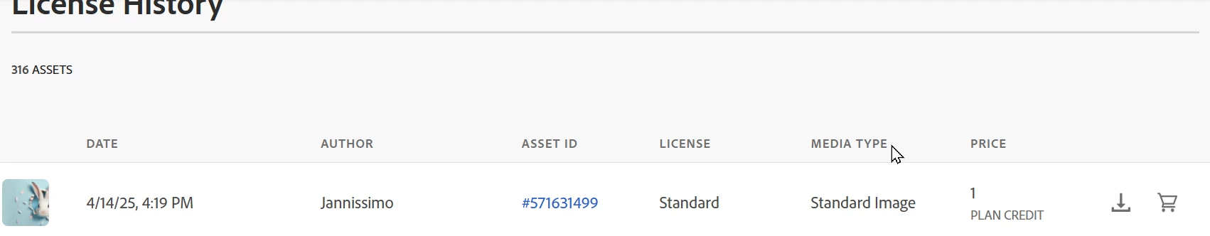From there, I have to click the "..." button and select More Info, copy the Asset ID, go back to License History, search for that asset ID, and I'll get the following result: