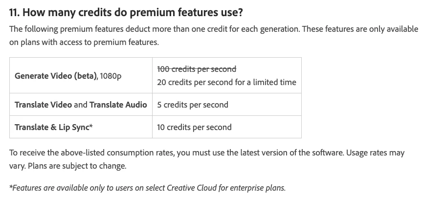 add how many credits it uses for generation, so that can get idea which plan suits best