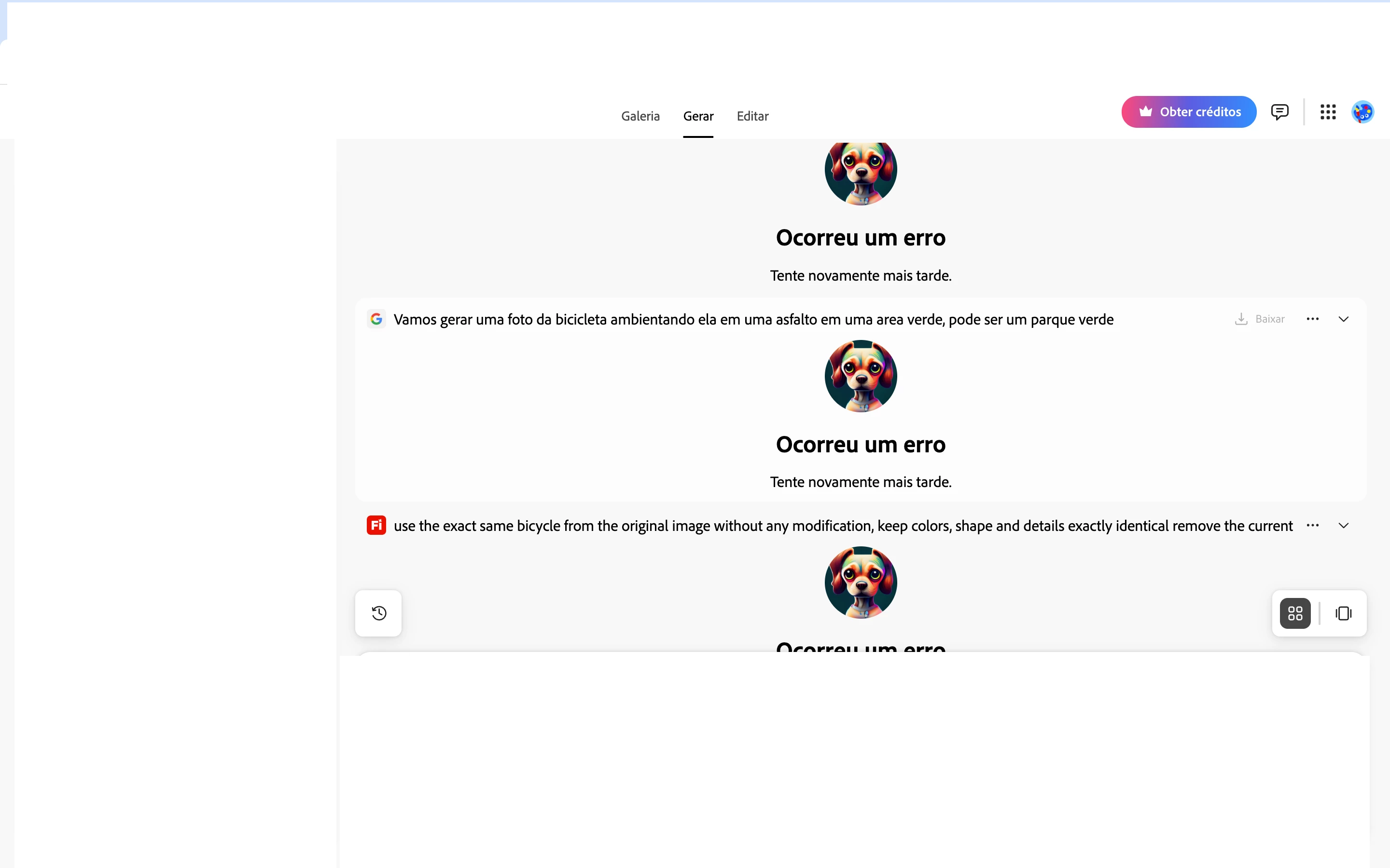 Estou tentando gerar imagens usando referência e prompt, porém fica dando erro atras de erro no sistema.