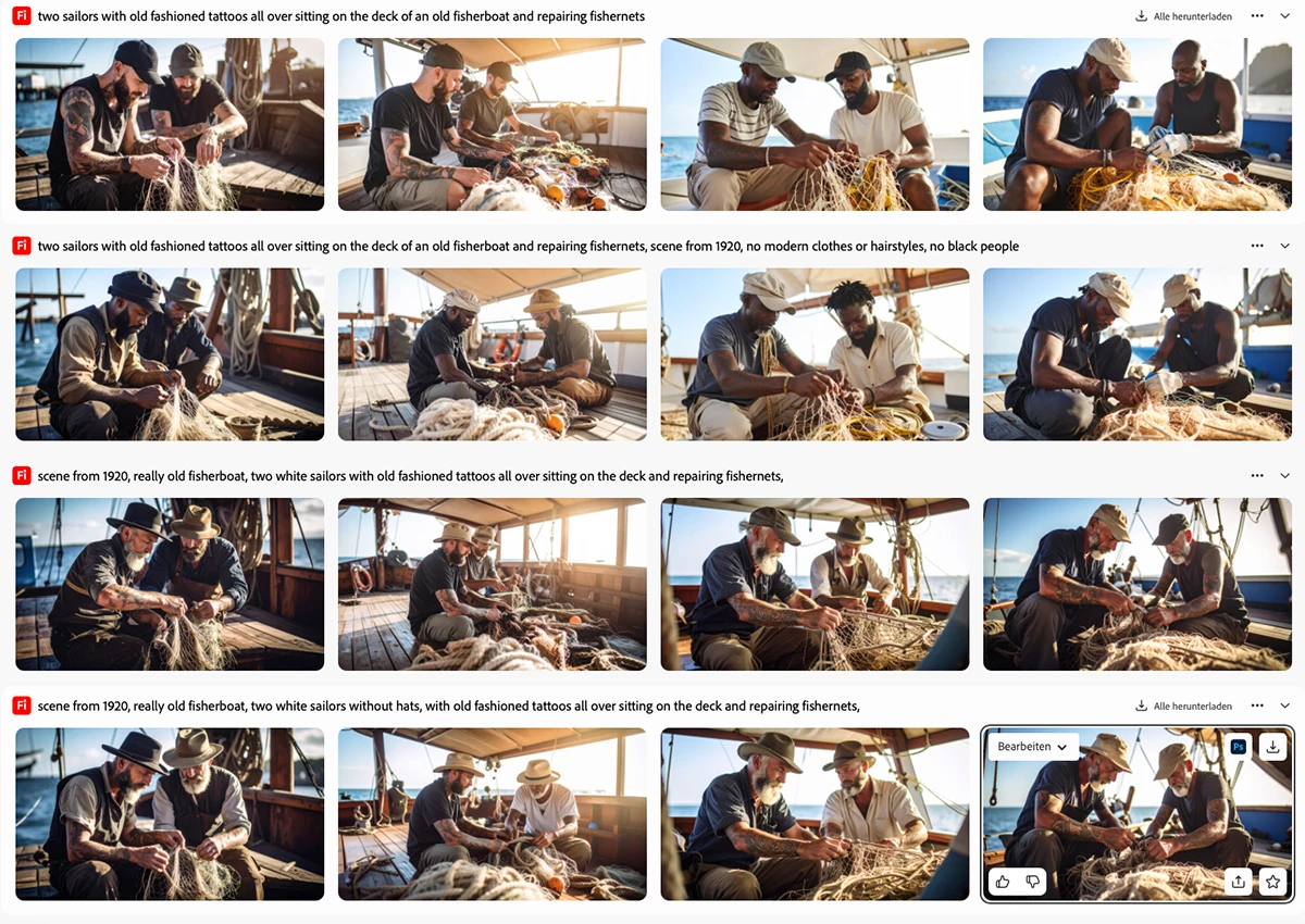 What do I have to promt, to tell the tool NOT to generate something? And why is everyone on my picture looking like an American sitting on a tourist boat? And how can I avoid it?